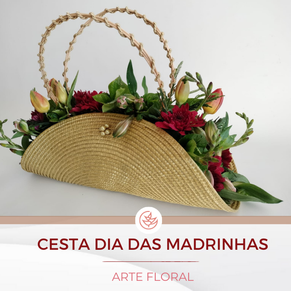 A sugestão deste ano para o dia das madrinhas é um arranjo que conjuga flores naturais e flores artificiais. Uma prenda elaborada com o objetivo de perdurar no tempo.